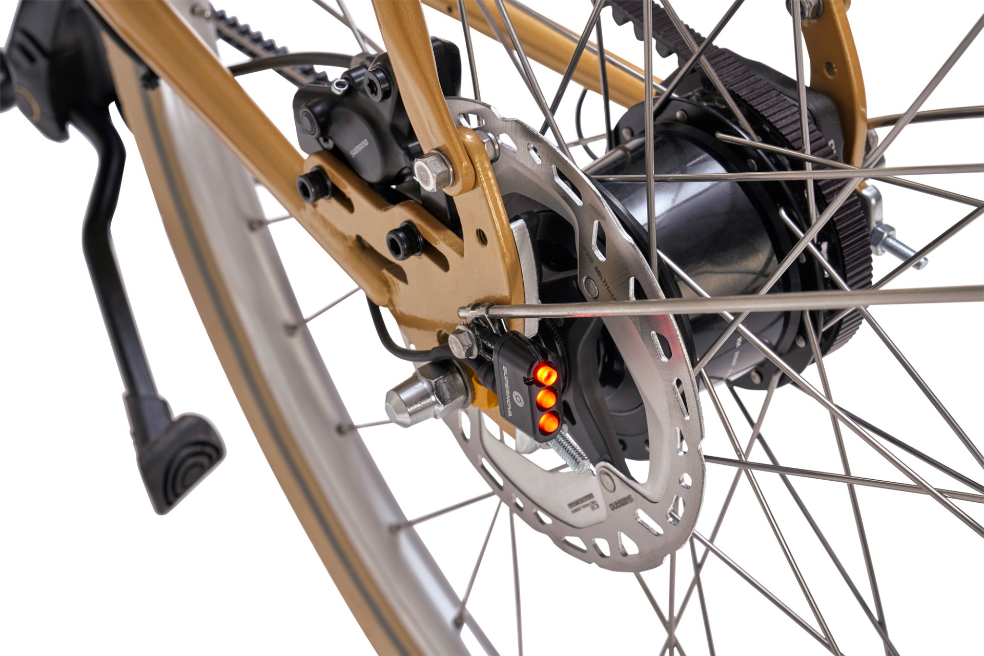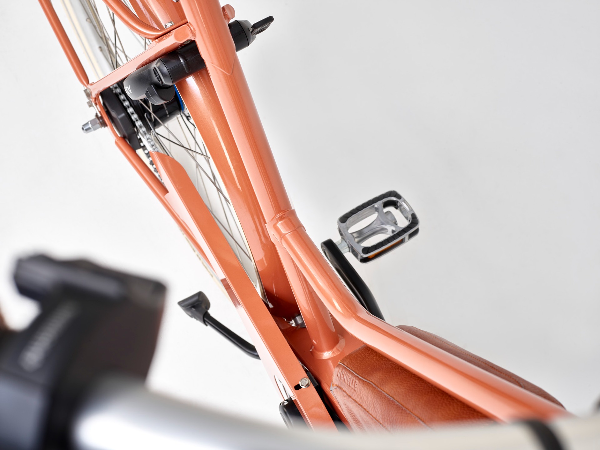 De rest van de opbouw kan je bijna volledig zelf kiezen. Er zijn verschillende frames mogelijk, meer dan 10 kleuren, je kiest de spatborden, de drager, kettingkast, banden,… en voor de batterij kan je kiezen voor een bijpassende lederen cover. Ook de verlichting kan je zelf bepalen. Er is de e-bike verlichting van AXA of je kiest voor de super-deluxe verlichting van Supernova (ongelooflijke lichtopbrengst).